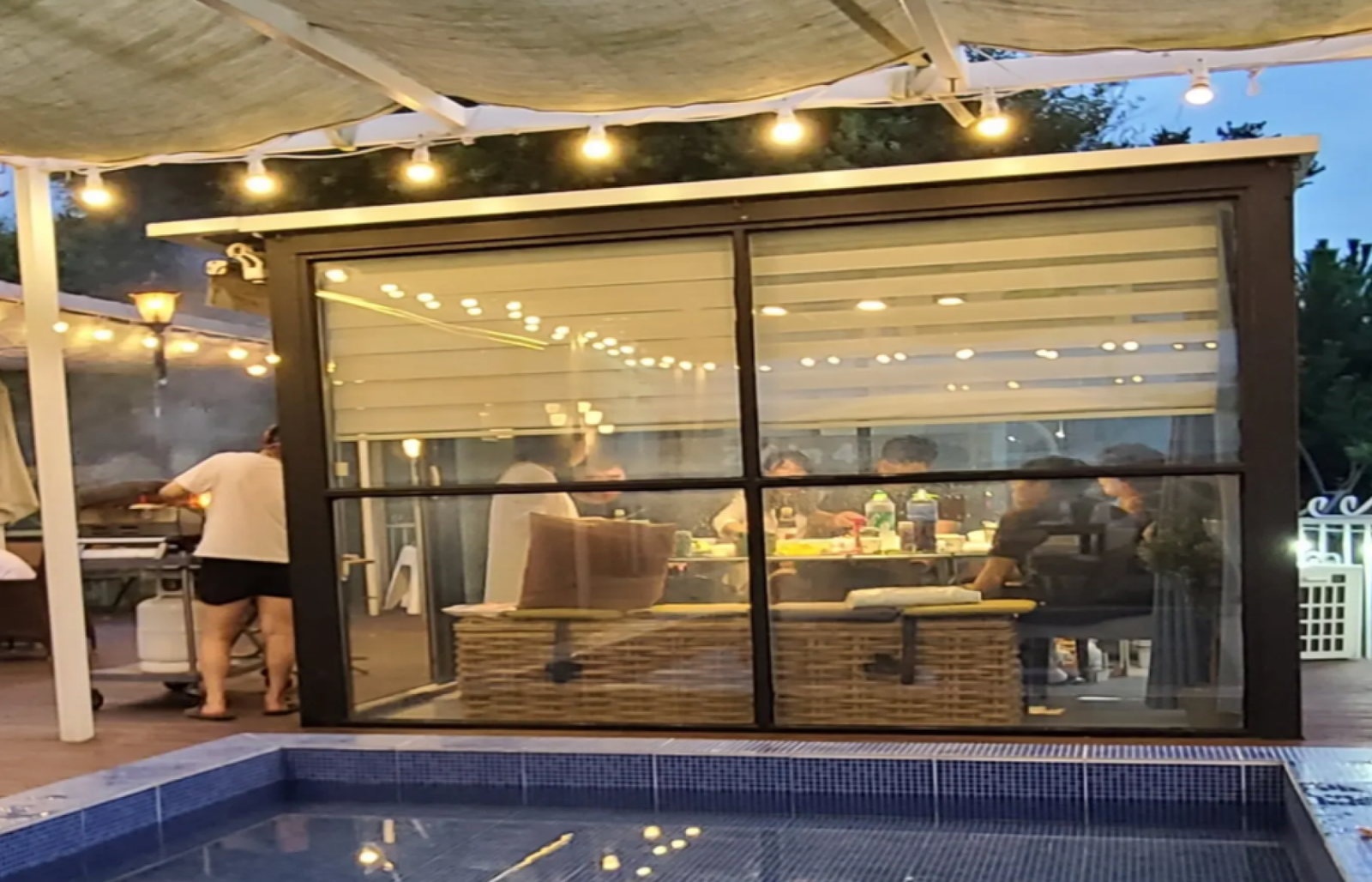 1층에 위치하며 확장된 발코니 창호와 전면으로는 간이수영장과 넓은 테라스를 면하고 있으며 바다가 바로 앞에 펼쳐져있어 테라스에서 즐기는 바다의 풍광이 일품입니다.